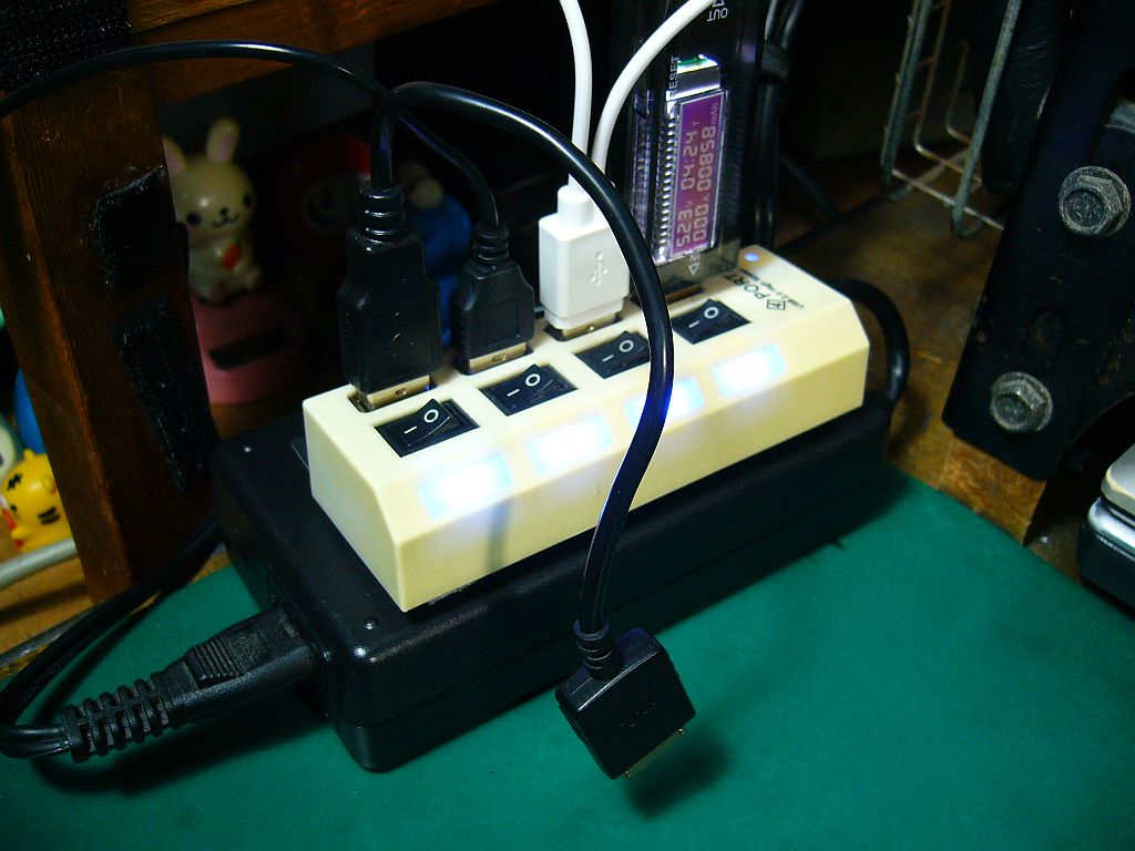 ...で、昔の「USB-HUB」を使って、もう少し格好良く出来ないか?と、ジャンク品を組み合わせてやってみたら、少しだけスマートになった!(←図1)