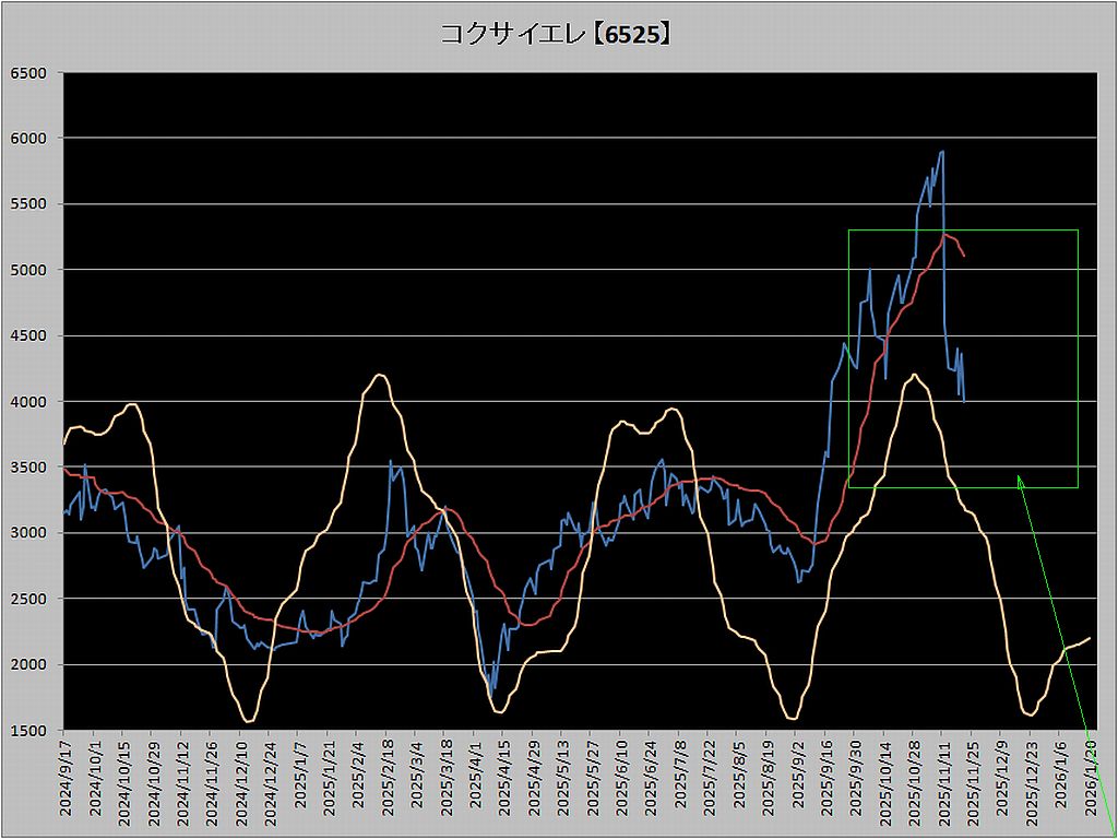 「コクサイエレ(6525)」の値が、やっと下降し始めたようだ。