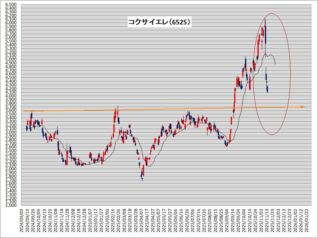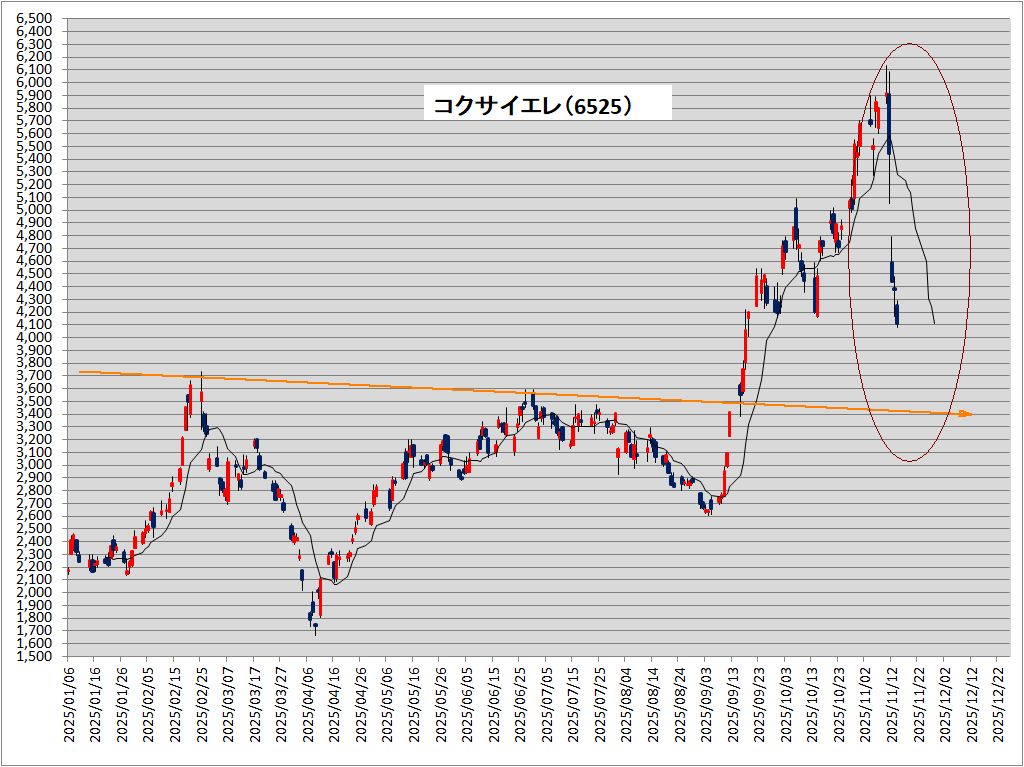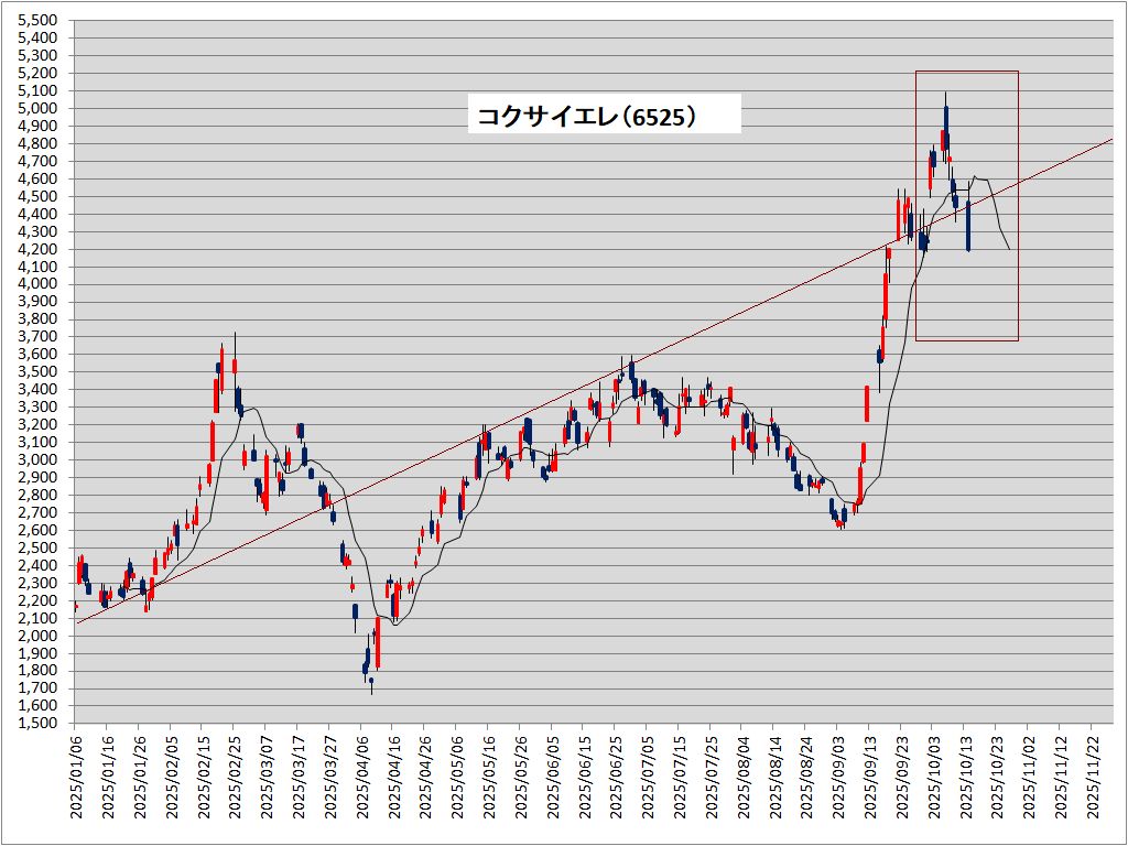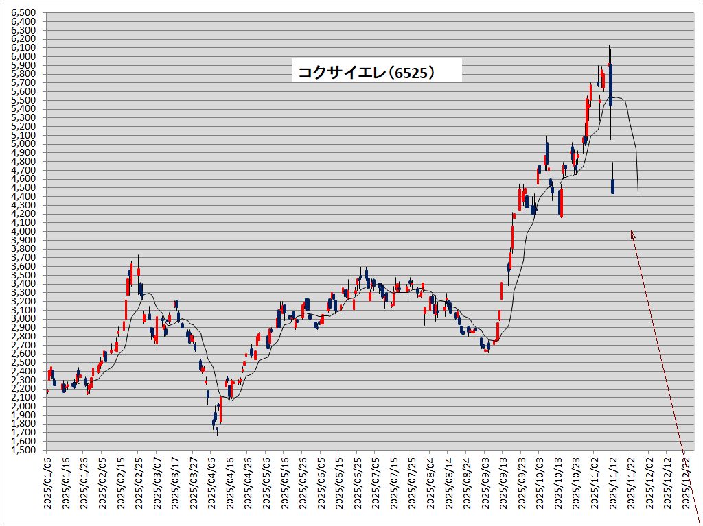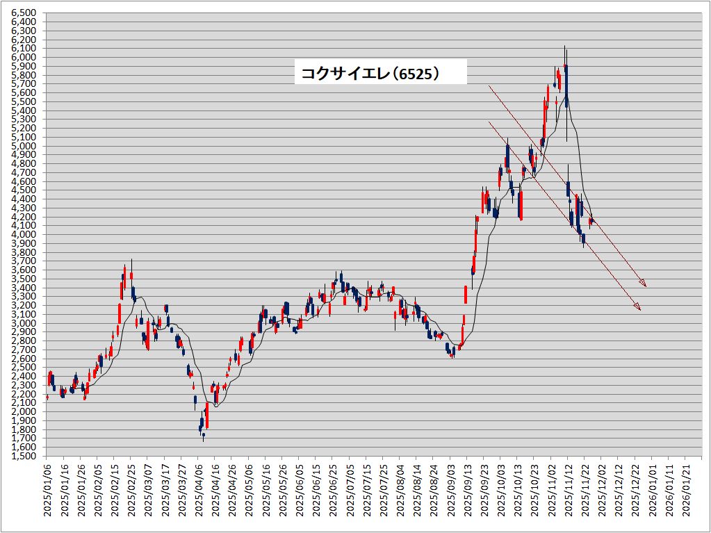 「コクサイエレ(6525)」の値が、やっと下降し始めたようだ。