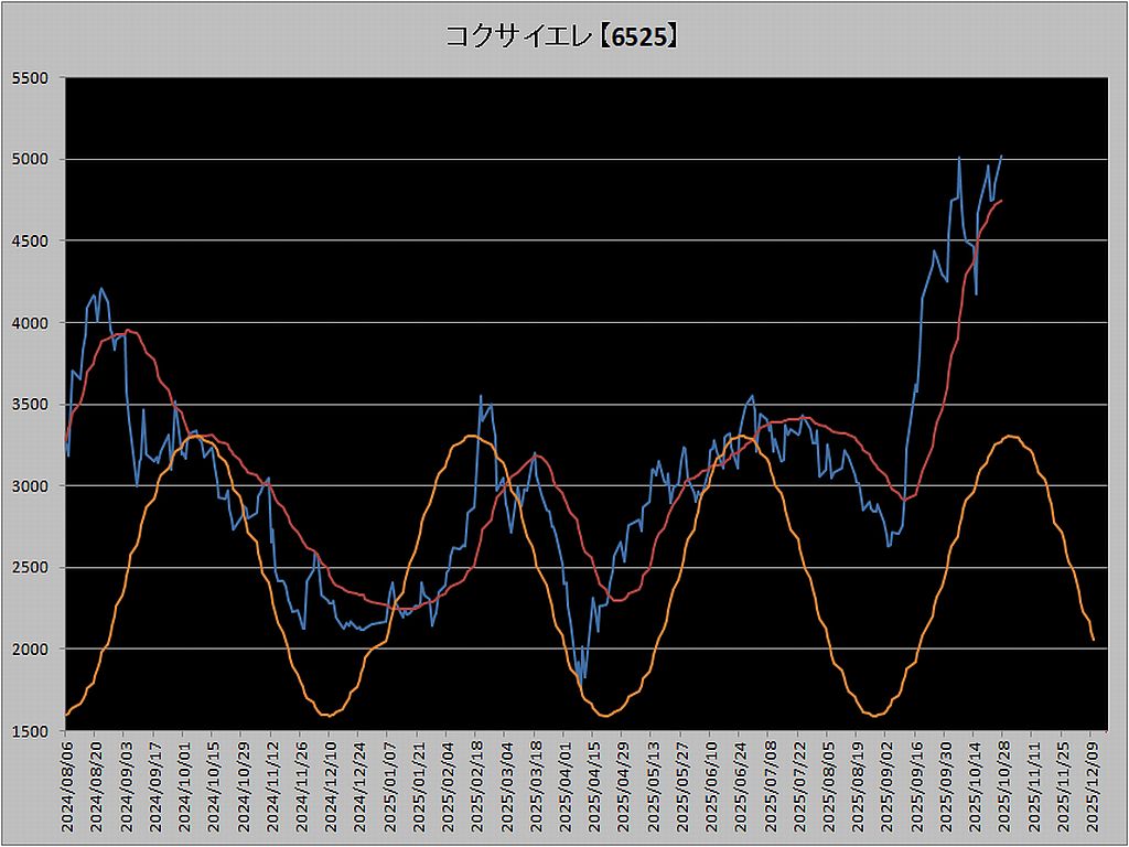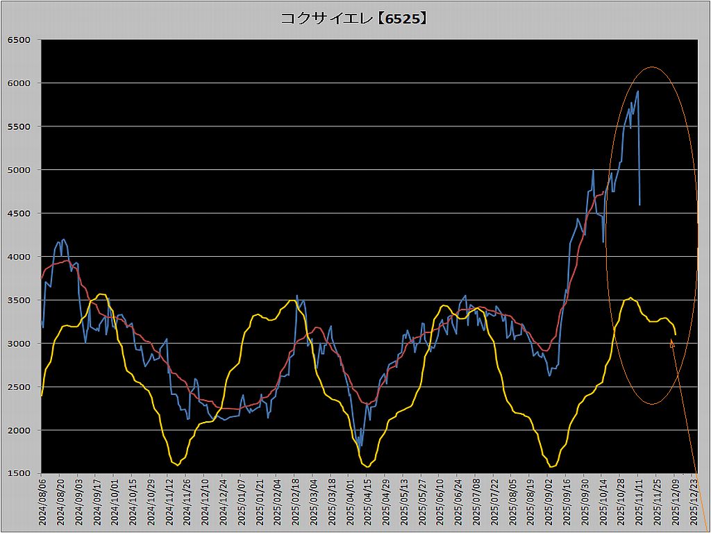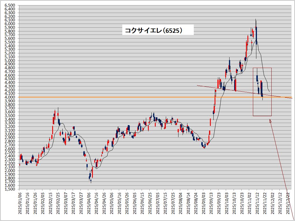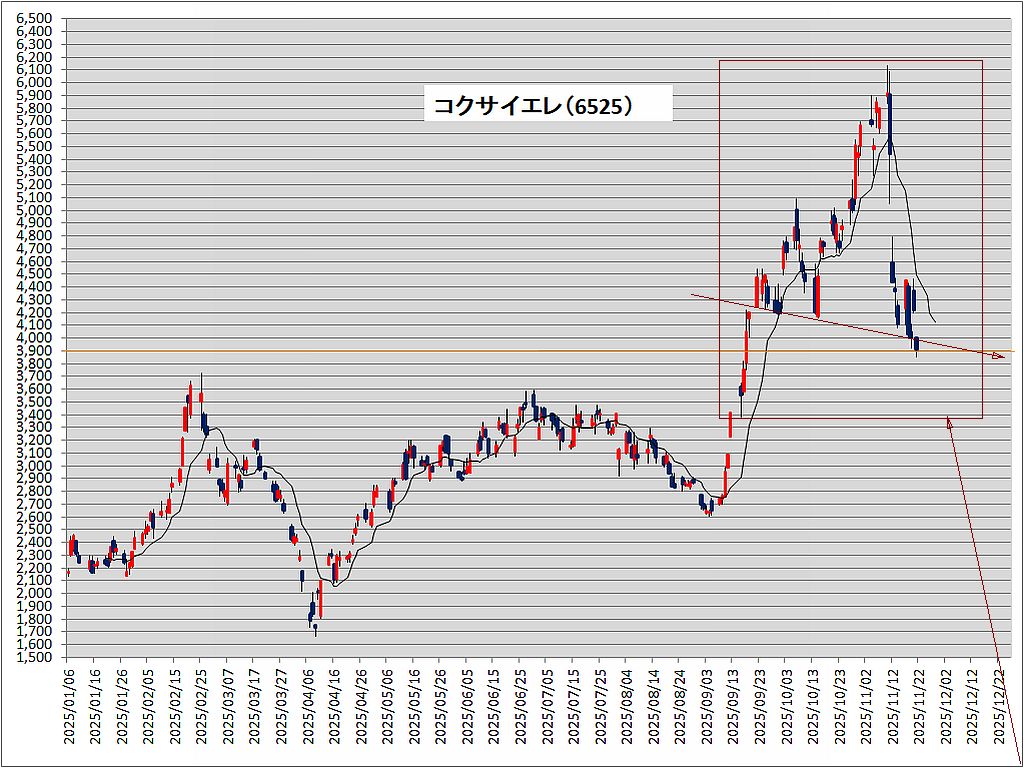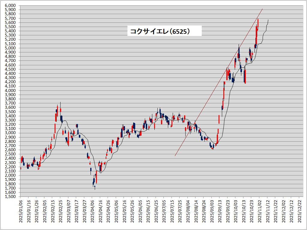 「コクサイエレ(6525)」の値が、やっと下降し始めたようだ。