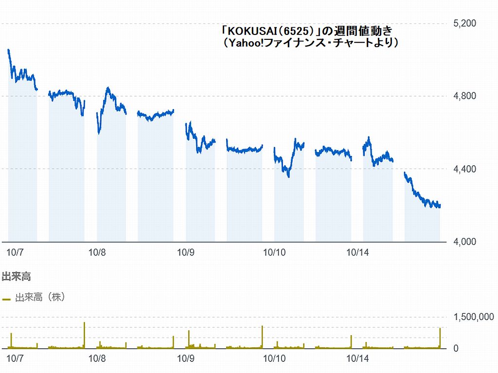 此の処、「コクサイエレ/KOKUSAI ELECTRIC(6525)」の株価が冴えない。