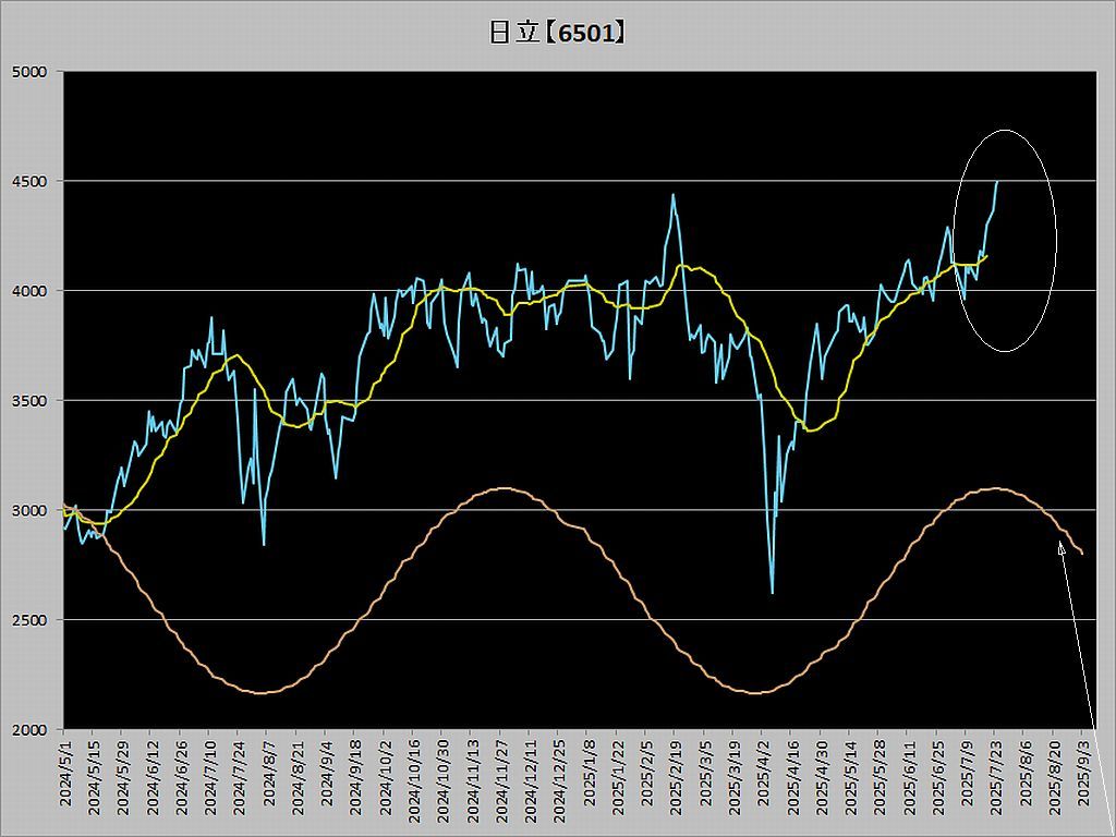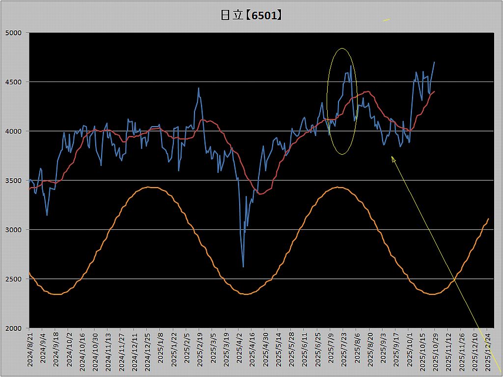 試しに、「日立(6501)」の値動きで予測して、その後の状況/結果を見たら、
