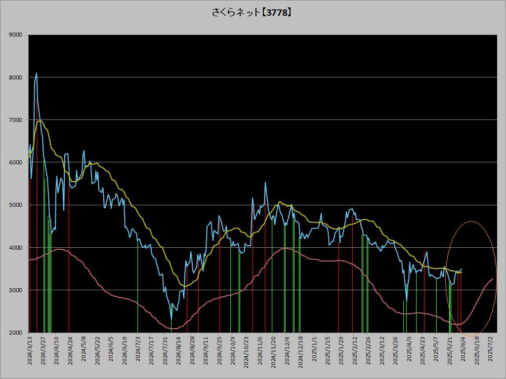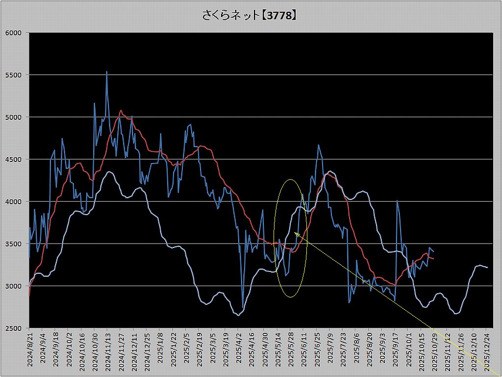 「さくらインターネット(3778)」では、昨年こんな値動きをしていた時期があったようだが、あれに似てはいないか?!(←図2の楕円印)